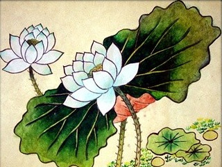 그 강물 위로 쪽닥배를 저어다. 연꽃이 가장 무성한 곳 아래 배를 묶는다.