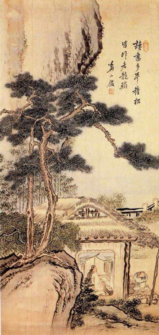 ▲ 이명기의 ‘송하독서도’(103.8×49.5㎝, 종이에 옅은 채색). 삼성리움미술관 소장