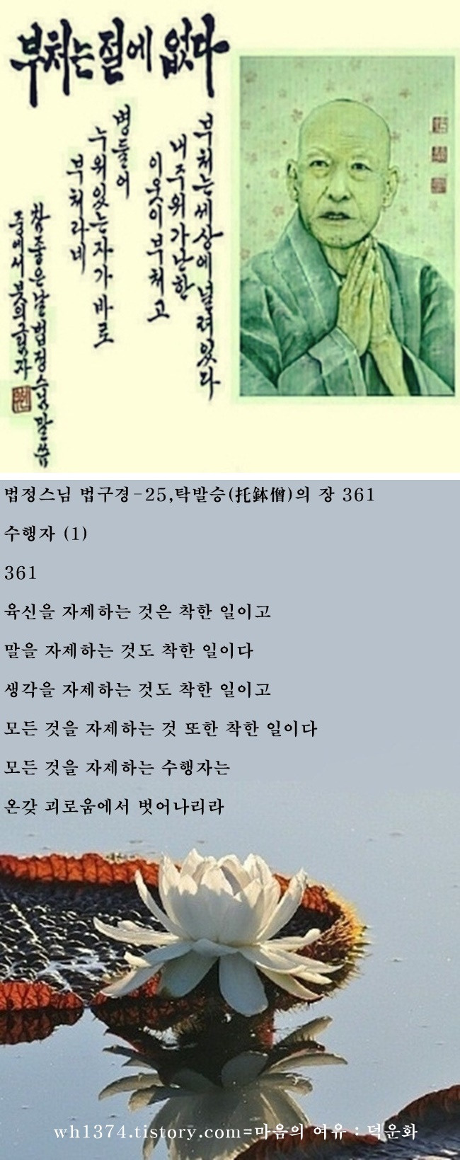 | 법정스님 법구경-25,탁발승(托鉢僧)의 장 362 (1) | 2025.10.01 |