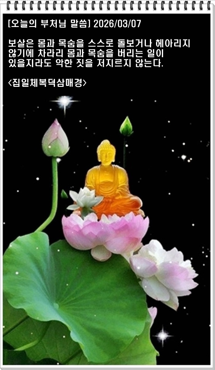 | [오늘의 부처님 말씀] 2026/03/08 (1) | 2026.03.07 |