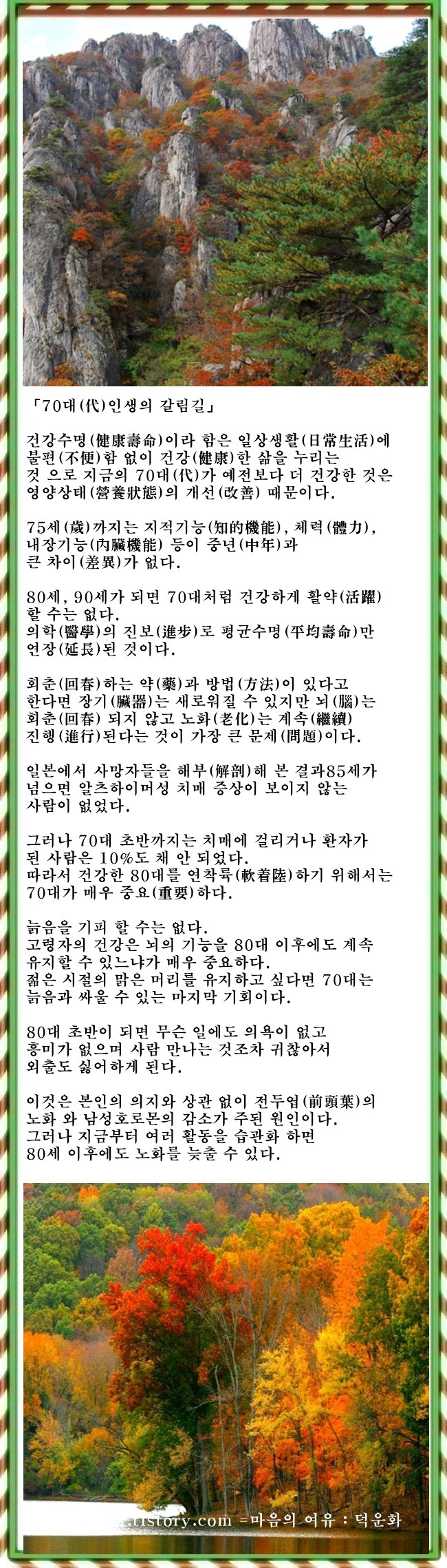 「70대(代)인생의 갈림길」