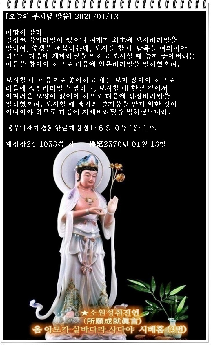 [오늘의 부처님 말씀] 2026/01/13