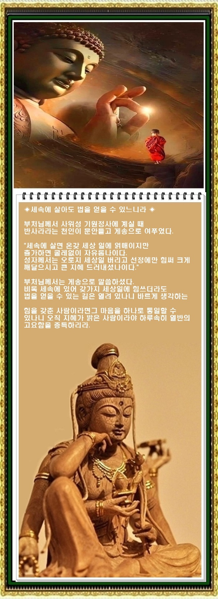 [오늘의 부처님 말씀] 세속에 살아도 법을 얻을 수 있느니라
