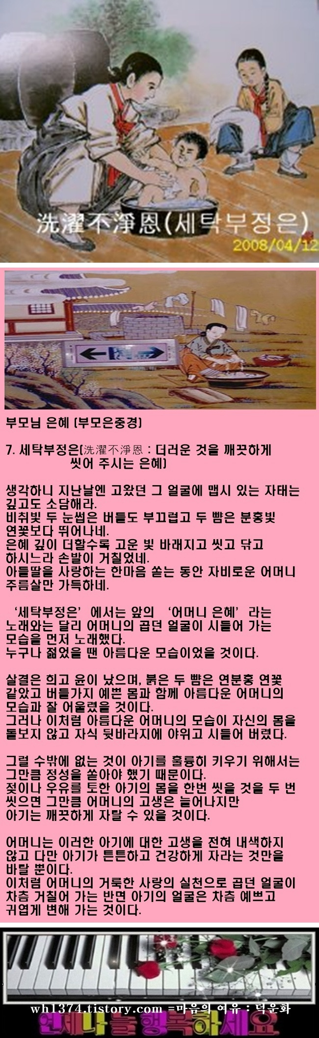 7. 세탁부정은(洗濯不淨恩 : 더러운 것을 깨끗하게 씻어 주시는 은혜)